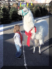 Winter Sunshine and King Asher went to Heritage Nursery for Family Day. Santa was there and lots of kids got to pet the "fuzzy reindeer". Winter and Asher were calm, well behaved and very sensitive to the children. Asher went to this event two years prior when he was less than half the size he is now. Winter is an old hand at public events and soaks up the attention. The temperature was cold at about 32F, slight breeze, but clear and sunny. This was the fourth year of our participation in this event. |