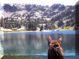 the lake continuing beyond it to the abandoned trail that descended the ridge in