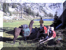 Boys taking a breather at Swamp Lake late in the day after about 12 hours of