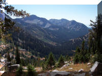 Friday was time to head down the trail for home. While I broke camp, packed sleeping gear, clothes, and such, Scott made breakfast and tended the llamas. They must of known what was up because getting the saddles and panniers on them was a breeze. After bidding a fond farewell to our campsite we were off on the return trail.  Scott and Pepper took turns taking the lead.  Whenever Pepper led he would become extra vigilant, smoothly trotting ahead then stopping to scrutinize our surroundings for possible dangers -- looking and listening. It took us three hours to hike out and on the way we met a couple coming in with a barking young dog. After a minute or two of conversation, with Sunshine focused intently on the restrained dog the whole time, she finally alarmed at at the hyperactive pooch -- something she rarely does, leaving it to others -- which agitated Pepper a little. Farther down the trail we met a couple with three llamas headed up to the same area we had camped. As the clouds gathered, driven by winds above us, I thought how grateful I was to be able to walk out and be out of the gathering storm. Rain was expected and snow was to dust the higher elevations. Crossing the bridges was a simple task and maneuvering through the rocks and dust was slow but rewarding. As we neared the trailhead the llamas froze on the trail, looking up the forested hillside.  After about 15 seconds of fixation, Sunshine alarmed.  We don't know what it was she saw as we didn't see or hear anything, but they wanted to get out of there post haste immediately after alarming.  Sunshine pushed us down the trail.  A basking cougar, perhaps? Arriving back at the van offered us a chance to unload and reflect. I felt relieved that we made it in one piece. My leg and back still ached and I had to deal with an asthma attack that slowed me down, but I would go again. The scenery was enchanting, the water refreshing, and wild animals beckoned to visit their part of the world. Nature always makes me feel whole and complete and this trip was no exception.